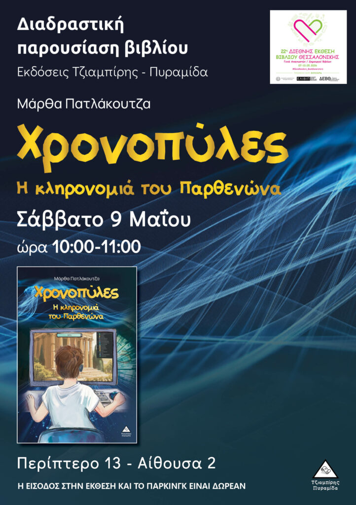 29Απρ29 Απριλίου, 2026 Παρουσίαση Βιβλίου “Χρονοπύλες – Η Κληρονομιά του Παρθενώνα” pyramida2026-04-29T11:45:11+02:00 By pyramida Νέα | Εκδηλώσεις Share: Facebook Twitter LinkedIn Pinterest Email WhatsApp Author pyramida
