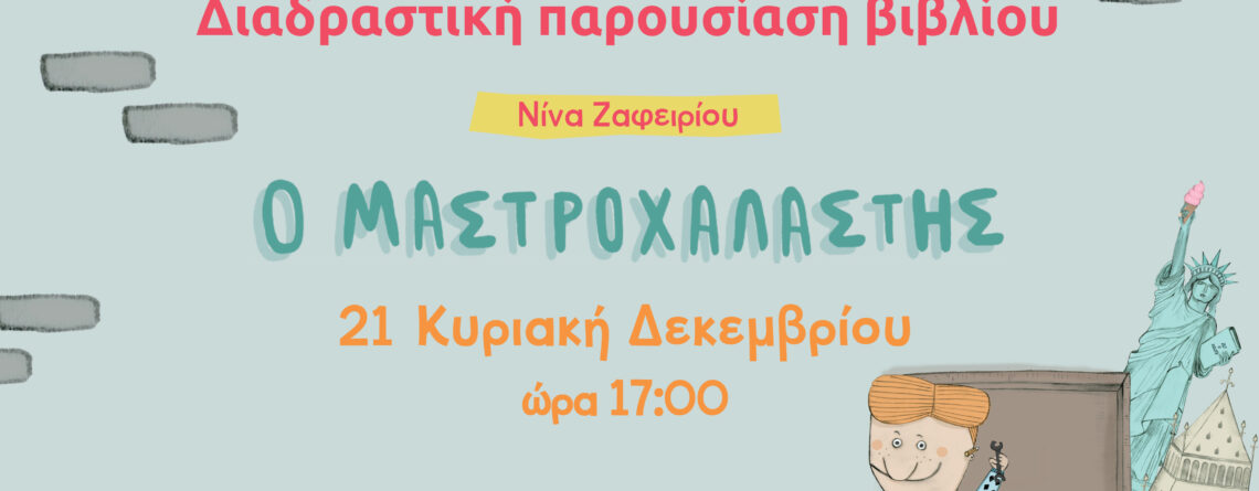 01Δεκ1 Δεκεμβρίου, 2025 Παρουσίαση Βιβλίου “Ο μαστροχαλαστής” pyramida2025-12-01T16:08:00+02:00 By pyramida Νέα | Εκδηλώσεις Share: Facebook Twitter LinkedIn Pinterest Email WhatsApp Author pyramida